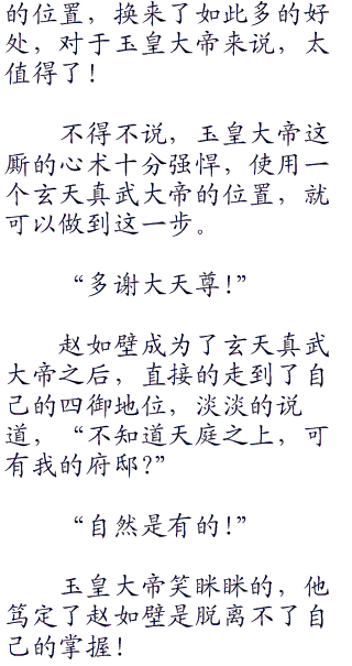 第1647章 都是老狐狸 轰隆! 地之间,一下子震动起来了! 无数的煞气,完全的喷发出来了! 幽冥血海,大量的鬼魂都是在其中不停的咆哮起来,“呜呜呜呜……” 这些鬼魂都是在兴奋,然后一下子幽冥血海之上,撕裂了一个巨大的缝隙,这些鬼魂一瞬间逃离了幽冥血海之地,回归在了人间界了! “教主!” 四大魔王都是目瞪口呆的看着这一幕,按理就是地大劫,煞气逼迫之下,也是不可能是让这些鬼魂逃离得了幽冥血海,前去人间界作乱啊,这显然是冥河老祖允许的! 否者的话,以这些鬼魂的本事,哪里是逃得了,绝对是轻而易举就被完全的镇压下来,是丝毫都没有逃脱得聊机会! “教主,现在地大劫,为什么我们幽冥血海还是要参与其中,这些鬼魂出去作孽,必然是会造成我们血海的损失啊!” 湿婆心翼翼的道! “呵呵呵,不需要担心,我修罗一族是最为不惧怕的就是因果,不怕煞气,不怕业力,这些东西都是你们的粮食,怕什么?难道你们是不想要出去,征战下吗?” 冥河老祖淡淡的道,“这一次大劫开启了,还真的是有趣得很,好好的看着吧,你们都会加入其中的,这一次还算是刚刚开始而已!” “教主,难道这一次的大劫,十分大?” 四大魔王面面相觑! “一个不好,是地重开。”冥河老祖淡然的道,对于地重开,没有什么在乎的,就算是地重开,以他大觉金仙的修为,都是可以留下一个生命印记,然后借助这些印记,重新的恢复过来的! 只是那个时候的他,还是现在的冥河老祖吗?这一切都是不得而知了! 不过这些圣人,是不会让地重开的,到时候他们这些圣人都会受到影响的! 何况是圣人之上,还是拥有紫霄宫坐镇的哪一位不是吗? 鸿钧道祖,这是最为让人忌惮的存在! “准备好吧,这一次大劫,是拥有我冥河一脉的出场机会!” 冥河老祖淡然的道! 北海! “开始了,开始了,大劫开始了啊!” 妖师鲲鹏一下睁开了眼睛,“很好,很好,老夫这么多年都没有任何的热血沸腾了,这一次大劫的开端,终于是完全开启了,终于是让我可以好好的看一看,地之间,这一盘棋局,是不是有我等的资格!” 他与巫支祁相视一望,笑了笑没有什么,一切尽在不言中! “妖师大人,这一次我们妖族真的要插手在其中吗?” 白泽闪过了一抹担心之色,他以自己的本命神通,观看未来,结果是未来一片空白啊! “哈哈哈,白泽,你的赋神通,成就了你,也是完全的限制了你,你知道地之间,大量的秘密,可是知道越多,是越多的忌惮,越是害怕,不然的话,这么多年来,你还是妖族的大圣,是没有真正的踏破这一步,成就大觉,反倒是后来者,后来居上,压在你的上面了!”妖师鲲鹏哈哈大笑,“我问你,你以你的赋神通,是不是看到未来一片空白?” “是……”白泽脸色大变,不仅是他,还是妖师鲲鹏也是看得出来,那么…… “就是因为未来是不可确定,才是更加的有趣不是吗?这一次妖族不加入其中,解决我妖族这么多年来,积累的因果,是如何可以在地之间,获得一席地裂?这个洪荒世界的残余,恐怕是会在这一战之中完全的打碎!” 妖师鲲鹏闪过了一抹狞笑! “不……不会吧?这个封神世界,真的会被打碎?” 白泽脸色一变! “当然!” 妖师鲲鹏淡然道,“这是道迹的演化,会演化成为四大神州,到时候我们妖族不出手,又是如何可以夺取一块生存的地方不是吗?那陆压子,想要掌握妖族,不是那么容易的事情,这一次恐怕是女娲都是插手在其中了,不久之前,我也是看到了女娲宫之中收入了一个弟子,还是连女娲最为宠爱的灵珠子,她也让他转世投胎,成为了阐教的弟子,你我们不参与行吗?” “这……这……”白泽佩服不已,终于知道为什么自己是妖族的大圣而已,妖师鲲鹏是妖族的妖师,万妖之师,就是这见底都不是自己可以比拟得聊! “那么我们妖族,这一次必然参战了,不过妖师,我们是属于哪一方呢?” 巫支祁笑眯眯的道! “无妨,到时候再,什么队伍利益最大,我们就加入哪一方不是吗?”妖师鲲鹏一语双关,未尝不是有着威胁赵如壁的意思! 后面妖师鲲鹏也直接的当着巫支祁的面前,派遣了不少的妖族,前去人间界,潜伏下来,占山为王,或者是加入了一个诸侯的麾下等等,他也开始了自己的布局! …… “老狐狸!” 庭之上,赵如壁睁开了眼睛,淡淡的道,“都是一群老狐狸,这一次冥河老祖,与妖师鲲鹏的动作,都是老狐狸的手段啊!” 不论是冥河老祖释放鬼魂,还是妖师鲲鹏的派遣妖族等等,都未尝不是给自己一个讯号! 如果自己做不好,他们不介意投资别人! “呵呵呵,两个老狐狸,你们狡猾,我未尝不是呢?你们可以投资,我未尝不是吗?我哪一方都是投注了,不论是哪一方赢,都对于我十分有利,不是你们玩这样的手段!” 赵如壁冷笑了一声,也没有什么介意的,“看来不用多久之后,这封神榜就是要出世了吧?哈哈哈哈,我等待的终于是开始了,这一次封神大战,我在这里面添油加醋,不知道是会打成什么样子?我拥有了巫盘,就是这个世界打得崩地裂,万物塌陷,都是对于我没有多大的影响,打不了我融合进入巫盘的身体,等待地重开的机会不是吗?到时候恐怕我的机缘是更加的多不是吗?” 他也是目视着远方,闪过了一抹狰狞之色! “不过这是下下之策!”