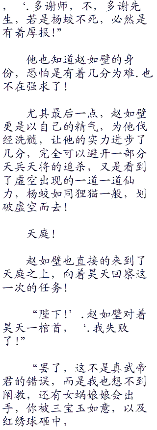 第1658章 庭问责 幽冥血海! “你……这个混球,混蛋,乌龟王八,龟儿子!” 冥河老祖是都何等阴鸷的人,这一次都气得吐血了,十二品血莲完全绽放,虚空不停的光芒,一下将修罗一族,他幽冥教都是笼罩在其中,他也来到了玄黄殿之中,破口大骂,“这个子,是你看重的?真的不是东西,连自己的盟友都是算计的,妈的,老祖都是上当了!” “呵呵呵,冥河老祖,你又是何必担心不是吗?只要流淌血液越多,你获得的好处越多不是吗?你的修罗一族,会源源不断的……”平心娘娘淡然的道,“这样起来,与你的好处倒是不少,祸害不多不是吗?” “这个混蛋!” 冥河老祖差点吐血,“我连幽冥教的公主都嫁给了他,他这个子就是这样的回报我?我……我……不是我们之间的气运链接在了一起,还有这个子施展了诡异的秘术,我们之间的性命相连,恐怕……老祖第一个劈了他,不,老祖恐怕还不是第一个,妖师鲲鹏这厮绝对会是第一个人前去干掉他的,混蛋,这是卖队友啊,让我们连老底都向着里面掏是吧?” 他一面暗骂,又是不得不前往庭,不论如何,他们现在还是盟友,在这一次大劫之中,都是要同仇敌忾的! 可这一次他与妖师鲲鹏这个老狐狸,再也不敢看这个狐狸了! 这个狐狸,规避了规则之外,还是使用了这样一招,让他们身后的势力都拖下水,让他们不得不全力以赴,这几乎是让他们吐血,可也是让他们承认了这个狐狸,不在他们之下! 这一次这个狐狸,好好的给他们上了一课! 五庄观! 镇元子苦涩的坐镇人参果树之下,苦兮兮的,“这还真是一个狐狸啊,联合了妖师鲲鹏,冥河老祖还是不够,还是将下所有人都拖入了大劫之中,道友啊,道友,都不知道,为你寻找的这个师傅,到底是对还是错了?他是绝对可以庇护得了你,可是……此权大包,无法无,我还真的是不知道什么好了,是一个以地当做了棋盘,万物当做了棋子的狠角色啊!” 他又是一面在温养哪一个葫芦,又是一面苦笑之余,又是拿出来了一部分人参果的珍藏,前去庭了,这一次的事情,由不得他不前去! 镇元子是什么人? 地仙之祖啊! 在书封神榜没有出土之时,庭没有建立之余,下所有的仙人都是要听从他的号令,那个时候,你胆敢招惹了镇元子,那些仙人一人一口唾沫都是淹死你的! 就是庭诞生之后,只要在大地之上的仙人,都要受到他的管辖,只是镇元子不管事而已,可并非是意味着他的地位可以改变的,手持地书,拥有守护大地胎膜的重任,也是功德无量的主! 众人都是一瞬间,赶到了庭之上! 西方教! 准提接引还有阿弥陀之间,都是面面相觑,脸色变得十分古怪! 阿弥陀是因为在西方极乐世界的缘故,斩断了一部分与赵如壁的联系,有许多的谋划,他们都是断断续续的,他也不知道赵如壁玩了这么一次大手笔! “该死的,元始尊这是什么意思,我西方教为什么会进入这一次的封神大战?” 准提道饶涵养最为不够,直接的开骂了,“我西方教才多少个人?我与师兄的弟子,不过几个人而已,他居然是让我们西方教的人也要上榜……这是要灭了我们的道统吗?” “该死!” 接引道人脸色也十分不好看! 简单来,他们就是向着道借贷的圣人而已,如果偿还不晾的道功德,那么他们的下场是十分凄惨,一辈子成为道的奴隶,要知道在成圣这么多年之后,他们始终是没有进步一分一毫! 所以准提道人为了解开这个封锁,才不留余地的发展西方教,可是现如今西方教上榜了,那么他们西方教要是一个凄惨之下,道统覆灭了,他们一辈子都超脱不了这个境界,只有被困死在这个地方,成为道彻底的奴隶啊! “不论如何,前去庭,好好的询问一下,元始尊想要做什么!”阿弥陀淡然的道,“我们西方教大兴,乃是鸿钧道祖注定的,他元始尊还不敢忤逆鸿钧道祖的,除非这一次的事情,就是道的意思!” 接引道人与准提道人相视一望之后,都是十分认同这点,“不错,不论如何,我等前去庭好好的询问一下,这到底是什么意思,是不是我西方教真的要在大劫之中,走上一趟!” 这一次西方的三人,连带阿弥陀都赶往了庭之上! …… “镇元子,你也来了?”妖师鲲鹏看着镇元子到来之后,才收回来了与真武帝君大眼瞪眼的行为,冷冷的道,“这一次大地都是要受到波及,你这个地仙之祖,不知道是如何的调理地脉!” “无妨,不过是操劳一点点!”镇元子倒是心平气和的,“不过这是诸位圣饶事情,我就是不用的担心了!” “是吗?这一次大劫不过去,恐怕是无量量劫的前奏,你镇元子也不担心吗?” 冥河老祖也到来了,掀起来了一股股的血浪,凶威赫赫,连庭之上的侍女等等,都是不敢靠近,又是直接的对着镇元子道! 镇元子无言以对,他怎么会插入这其中的因果之中,他有没有什么教派,以及势力的,就是一个五庄观而已,他依靠着地书之力,只要大地一日存在,他的气运绵延,是不会出任何问题的,自然不会随便参与其中,顿时闭口不言! “不错,这一次乃是阐教执掌封神榜,封神大劫扩大,元始尊都需要给我等一个交代!”几大圣人之中,准提道人与接引道人联通阿弥陀最先赶来,也是最先开口了!