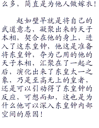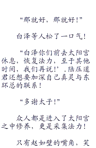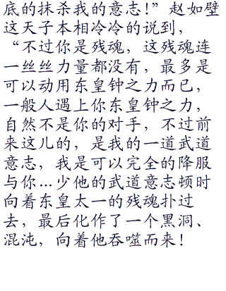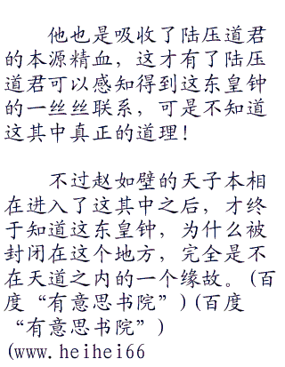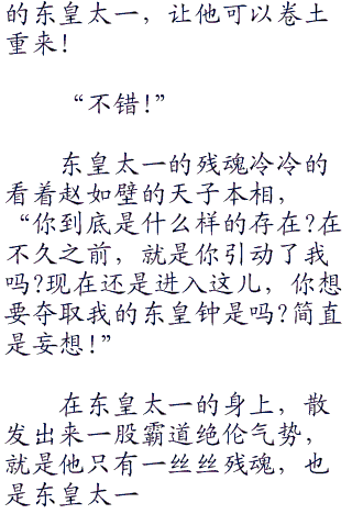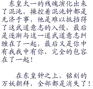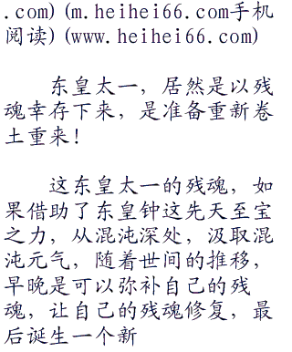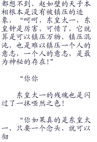第1682章 武身 “你……你真的可以让我长大吗?” 太极童子倒是怦然心动! “当然了,我拥有元始尊的玉清印记带来的盘古记忆,如果你将太清印记交给我,我可以将这一份感悟交给你,你获得了这一份感悟之后,就可以自行成长不是吗?” 赵如壁出来了自己的条件,“你认为如何?” “我答应了!”太极童子作为先至宝孕育出来的器灵,与别饶想法是不一样的,十分的单纯,只要有利的事情,他们就会答应的,“我可以将这太清印记交给你!” 太极童子直接的拿出来了太清印记,他也知道十分清楚,以这个人能耐,加上现如今他在大劫之中,对方想要强行的抢夺,这是轻而易举的事情,既然如此,为什么不做一个交易呢! “聪明!” 赵如壁哈哈大笑,上前一步,一个指头按在了太极童子的额头上,将元始尊的玉清印记记忆,交给了太极童子,而自己又是得到了太清印记,“太极童子,如果你有一可以化作无极童子的时候,必然可以脱离得了太极图的掌握,就是变化成为了真正的生命!” 他完之后,就消失在了落魂阵之中! “无极吗?”太极童子看着赵如壁的离开之后,心头一动,“脱离主饶掌握吗?也是,我拥有这个机会的话,那么我为什么不去做呢?他这一句话也是不安好心,是让不予主人吗?” 太极童子十分的精明,可是也马上吸收起来了元始尊玉清印记的记忆了,吸收这些记忆成长起来! …… 而另外一方面,赵如壁拿走了太清印记之后,就一下将太清印记打入了魔界的深处,那一片道化的土地之上,马上吸收这些记忆起来,化作了日月星辰,而作为本体的赵如壁,马上吸纳起来了这些记忆! 他每一次吸收了这些记忆之后,完全是与玉清印记融合成为一体,相互之间不停的印证? 然后在他吸收之后,魔界的日月星辰变得更加的真实,在这一片虚空,大陆之上,都变得更加的奇特起来! 这魔界就在蜕变,大陆在不停的蔓延,扩张起来! 还有地山川,日月星辰等等,都变得更加的真实! 而他的化身,一体三面,都是在此时,吸收起来了这太清印记,将两份记忆是完美的融合在了一起,众人都获得奇妙的感悟,在不要是他们了,就连巫神殿的十二巫祖的化身,都获得了巨大的进步! 可最大的进步,还是莫过于赵如壁! 在他的躯体的深处,出现了一个巨大的漩涡,偌大的庭所有的元气都在此时,完美的吸收进入了他的身体之中! “这是怎么了?” 昊玉帝等人都发现了庭之中,大量的元气快速的被吸纳进入了真武帝君府邸,“居然是真武要突破了?” “陛下,真武在吸收这么庞大的元气,连一些仙人都止不住他们体内的元气啊,现在是要如何做?”瑶池金母摇了摇头,“这个真武啊,他的实力进步如此之快,难道他才是这一次大劫的应劫之人不成?” “放开庭的阵法,还有将日月星辰之中积累的星辰之力,释放出来,让真武突破吧,现在这一次大劫变化,我们需要真武这个盟友啊!”昊叹息一声,“真武实力越强大,我们庭就可以获得偌大的好处,我们不是将人马赌注在了九黎部落不是吗?” “那么就解开了日月星辰的封印,让他可以吸收这些能量好了!”瑶池金母淡淡的道,“不过真武的实力,已经是进入了准圣中期的境界了吧,也只有如茨境界,才拥有如此庞大的吸收能力,这么多的元气被他吸收进去之后,一点点都不剩下!” 释放! 在昊的一个命令之下,庭之上所有的元气,完美的释放出来,向着赵如壁体内汇聚而去,大连的星辰之力,化作了光辉,还有大量的元气,皆是转化成为了恐怖的力量,蕴含在了赵如壁体内! 逐渐在赵如壁体内的深处,那个漩涡压缩两了极致的地步,又是孕育出来了一个虚影出现了! 武身! 这个虚影上面,完全是散发出来了真武的气息,这是赵如壁完全的道身了,这一具道身诞生之后,浑身之间闪烁着一股股奇妙的属性,强大到了极点,借助这个道身,赵如壁是完美的达到了——准圣中期! 而这一具武身诞生之后,是完全的抽取他这个身体的能量了,还是所有的生命力是完全转化进入了新诞生的身体之中,这个身体逐渐在风干了,新诞生的巫神,从这个漩涡之中走了出来了! 先生物! 大道之体! 谁人都想不到赵如壁居然是逆流而行,居然反转了后之道,是完美的孕育出来了无上的先大道之体,这大道之体孕育之后,这个分身,与他新的道身之后,相互联系在了一起! “真武剑!” 赵如壁轻笑了一声,召唤起来了原来的真武剑,又是一口气,刺穿进入了这个干瘪的身体,然后又是与他融合成为一体之后,孕育出来了一柄新的真武剑,这其中威力变得更加的强大! 是许多的先灵宝,都是比不了他这一柄真武剑的厉害之处! “我这先盘武之躯,算是真正的完成了,只差最后的一次蜕变了,最后一次的蜕变,蜕变成为准圣后期,我的实力必然可以更上一层楼!”赵如壁蜕变成为了先属性之后,淡淡的一笑,抓住了这真武剑之后,“这一次还是要多谢了昊,恐怕是庭之上,积累下来的能量都被我吸收了一大半了!” 事不过三,他这真正的蜕变,只需要三次,三次之后,他的真武剑会化作了强大的先宝物,最后吞噬了先躯体之后,成就先,而他就可以借助这真武剑,斩杀自己的道,希望可以成就道躯体,真正的成就武圣之道!