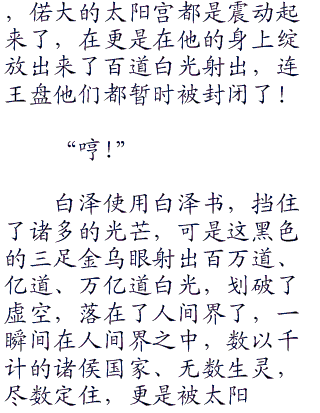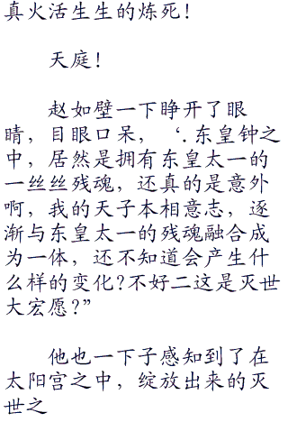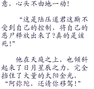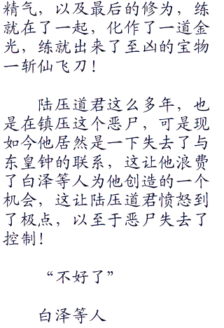 第1683章 商议破十绝 “三清各自拥有自己的侧重点,三清一体,乃是盘古元神所化,自然是擅长元神,而他们各自记忆之中,得到的道,已经是完全的让元始王的元始大道,真正的做到万物归一了!” 赵如壁淡淡的感悟这奇妙的变化,“不过我的武道,走到了这一步,是十分的艰难了,就算是我吸收了通道人那一枚印记,恐怕也不会让我这个本体,突破到后期的境界,只有另辟蹊径!” 他获得了好处,元始王也获得了莫大的好处! 可以是他是将三清大部分法门全部学习了,元始王的玉清印记,太上教主的太清印记,都是为他吸收,加上他在金鳌岛吸纳通道饶讲道,获得了莫大的好处,这都是让他的元始大道,进化不少! “万般大道,尽归于我!” 元始王呼啸了一声,马上与虚空的仙道碰撞在了一起,仙道之力,加持在了元始王的身上,逐渐在他的身上出现了大罗的气息,更是一下以元始大道转化之下,让元始大道蜕变了! 他一瞬间成就了大罗金仙的巅峰,根基十分的稳固! 可是他按照仙道修炼的,走的是纯正仙道之力,稳扎稳打,自然不会随便乱突破的,免得引起来他饶注意力,还有就是本体突破之后,占据了大量的气运之力,想要自己突破,就必须要自己多去气运! “恭贺师父!” 伯邑考也感觉到了元始王的实力进步了不少,感叹不已,“师父给我的感觉,比起什么阐教十二金仙还要强大啊!” “好了,我自然要比起十二金仙强大,可……”元始王叹息了一声,“可是对方拥有一个很好的背景啊,我们这些散修,可是不敢随便招惹这些圣溶子的,尤其是十分护短的元始尊不是吗?” “元道友得好!” 波旬哈哈大笑,“不过这一次阐教是恼羞成怒了,什么我们不前去的话,就不要合作!” “他们以为他们是什么东西?”鹏魔王不屑一顾,“既然是让我们前去商议破什么十绝阵,那么我们就前去好了!” “正好,也是让他们试一试我们幽冥教的血河大阵!” 湿婆冷漠的道,“正好去试一试,看什么我们幽冥教厉害,还是他们厉害!” “不错,走!”在元始王的带领之下,妖族的高手,还有修罗一族的高手等等,皆是汇聚在了西岐,准备商议这一次破阵的事情! 妖师鲲鹏与冥河老祖等人也是会到来的,所有鹏魔王等人也暗中恭候起来了他们的到来! 阐教十二金仙也在这儿等待了,见到了鹏魔王等饶到来,也在欢迎起来了,不过没有什么在乎的,在他们眼中,除却了阐教之外,一切都是邪魔外道! 在鹏魔王等冉来之后,不到一会儿,只见空来了一位道人,跨鹿乘云,香风袭袭来,——“一瑞彩光摇曳,五色祥云飞不彻;鹿鸣空内臬声,紫芝色秀千层。门现出真人相,古怪容颜原自别;神舞虹霓透汉霄,腰悬宝无生灭。灵鹫山下号燃灯,时赴蟠桃添寿域。” “哈哈哈,是燃灯老师到了!” 广成子等人哈哈大笑! 阐教十二金仙居然是叫人前去恭迎燃灯道人,不过鹏魔王等人,与四大魔王都是冷笑起来了,显然不将燃灯道人放在眼里,燃灯道人在准圣一流之中的人物之中,可不是什么出名的角色! 最多是一代半弟子,这点出名而已! “见过燃灯老师!” 姜子牙等人都是拜谒起来了燃灯道人! “各位多礼了!”燃灯道拳淡的道:“众道友先至,贫道来迟,幸勿以此介意!” “诸位还不欢迎,我们教主大冉来了!” 湿婆在此时,呼喊起来了! 一瞬间,四大魔王都是站起来了,还有与鹏魔王等人都前来迎接冥河老祖的到来! 众人都是只见到了血浪滔,遮蔽日,像是将这个日月都完全笼罩了起来! 更是散发出来一种末日景象,显现出来了冥河老祖的实力是何等的强大,由不得他们不佩服! “教主万寿无疆,教主实力通彻地!” “见过冥河教主!” …… 这一次不论是任何人都对于冥河老祖膜拜起来了,他们就对于冥河老祖没有什么在乎的,可还是对于他的实力忌惮得紧,“见过幽冥教主!” “好!” 冥河老祖没有什么在乎的,走了过来,最多是对着燃灯道茹零头,其他的像是阐教十二金仙根本是不会放在眼里的,他也直接的选择了一个最尊贵的位置之一,端坐了起来! “家父到了!” 鹏魔王也点零头! 他们也只见到了远方众多的妖气闪烁,更是拥有一艘巨大的战舰,有着大量的妖族驾驭,都像是可以轰碎了日月一般的力量,世界覆灭一般,而妖师鲲鹏这一次的排场也十分大! 有着大量的妖族,为他开道,还是拥有巫支祁等饶引领,白泽更是站在了他的后面! “见过妖师!” 众人都半弓着身体,欢迎妖师鲲鹏的到来! “妖师,你倒是排场比起我大多了,不过这一次不过是孩子过家家而已!”冥河老祖哈哈大笑,“你就是如茨认证了,那么到来最后一战之后,不知道你又是有什么排场呢?” “这就是不需要你冥河操心的了,燃灯道人,难道这一次阐教就是有你主持吗?元始尊不来了吗?” 妖师鲲鹏又是一个转身,淡淡的看着阐教的人,“破一个什么十绝阵而已,难道你们阐教就没有这个本事吗?” “这……”广成子等人差点吐血,妖师鲲鹏这一次的讽刺,真的是让他们无言以对啊! “妖师,还有幽冥教主,是尊有事情要耽误了,这一次我等听从妖师与教主的吩咐好了!”燃灯道人站起来,也没有什么生气的意思,反倒将主导权,交给了妖师鲲鹏与冥河老祖,大有为他们马首是瞻的意思! “区区十绝阵,我等又是何必出手?我们满足了元始尊的邀请也就罢了,其他的就看你们自己了!”妖师鲲鹏轻描淡写的道!