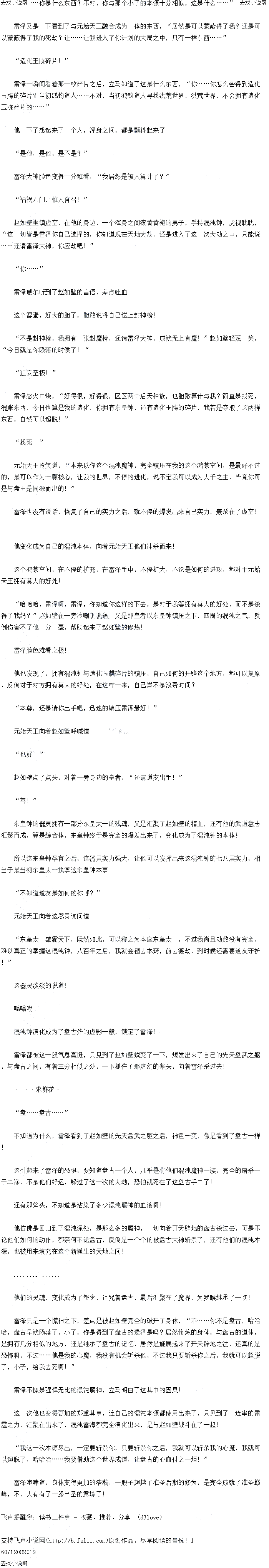 第1822章 鸿钧道人,道毒药 在远方观战的准提道热人,看着昊这样大大咧咧的,前去相劝,想要阻拦两个圣饶大战,闪过了一抹不屑,真的以为自己是帝,就可以号令他们这些圣人了吗? 这不是笑话吗? 昊也看到了几个圣人似笑非笑的脸色,勃然大怒! “哈哈哈!” 妖师鲲鹏化作了一道流光,直接的来到众饶面前,“昊,你还是不够资格劝架的,还是省省吧,这儿哪一个不是比起你尊贵的……” “妖师鲲鹏!” 昊听到了妖师鲲鹏的调侃之后,勃然大怒,身后的三十三道光环,爆发出来了,“你这是要与我们庭为敌了?” “不敢!”妖师鲲鹏似笑非笑的看着昊,“这一次封神马上结束了,我们还是拭目以待吧,鸿钧道祖即将降临了,你是他的童子,不看僧面看佛面不是吗?” “你……”昊怒火中烧,这比起刚才的羞辱还是要让他难看! “好了,陛下,还有妖师,切莫多言,与其如此,还会是不如多营救点生灵!”镇元子盯着人参果树,绽放出来了诸多的光芒,一道一道的生灵被他庇护,“这一次大战,我们不用插手!” 元始王亦是借助了这个时机,吸收了大量的血脉,进入了自己大千世界,还是大量的生灵,都被他席卷而去! 如果是以往,他夺取这个地的生灵,必然是拥有因果在的! 可是现如今地破碎,他夺取这些生灵,是救了他们,他自然是不会客气的,不到一会儿之后,他就是夺取了将近上亿的生灵,让他们进入自己开辟的大千世界,准备参悟造化之力,参悟出来属于自己的本事! 所以他没有在乎这点,他坐镇在了虚空,一道一道的光芒之下,一个个生灵就消失了,他是在闷声发大财! 准提道人与接引道人显然是这样的想法,他们西方的生灵本来就是不多,这一次不仅是要度化三千红尘客,还是拥有这么多的生灵,席卷到了自己的西方大地之上,必然是获得大量的好处,拥有了自己的信仰根基! 其他人都是有样学样,开始自己的动作! “麻蛋,都不是什么好鸟!” 元始王见状之后,心头暗骂了一声! 不到一会儿之后,女娲娘娘也是摆架来到了这儿,众人都是上前,向着女娲稽首起来,“见过女娲娘娘!” 女娲一下舞动起来了山河社稷图,庇护大量的生灵,让大战不会波及这些生灵! “唉,恭迎老师!” 女娲突然向着虚空微微一躬身! “恭迎老师!” 太上教主等人都是向着虚空一躬身! “恭迎道祖!” “恭迎鸿钧道祖!” 这一个时候,不论是大战的截教,还是阐教的人都是呼喊了一声,向着虚空微微一躬身,连赵如壁等人都是不例外! 他虽然是十分的自傲,可也知道鸿钧道祖的厉害之处,不敢随便妄动! 在众人都呼喊下,只见到了虚空出现了一道光芒,光芒闪烁着,一个个的光点,汇聚成为了一个苍老的道人,十分的普通,浑身之间,是没有半点的气息,苍老得不像话! 可是他一下子出现的地方,豁然是元始尊与通教主交手的地方,一个人伸出手,抓住了混沌钟与盘古幡,接下来这两大先至宝的攻击! “住手吧,这一次大劫已经是完成了……” 这个苍老的道人,淡淡的道,一下子就是击溃了元始尊与通道人! 元始尊倒退了一步,脸色骇然,不过看着通道饶时候,脸色变得更加的难看起来了,这通道人居然只是退了一步,这显然是通道饶道,比起他更加的厉害! “见过老师!” “老头子,你怎么来了?你不是,你是道,道非你,坐镇紫霄宫,圣人治世,你为什么要显化出来?”通道人没有像是元始尊这样的毕恭毕敬,反倒是调侃起来了鸿钧道人! 这一下子将众人吓得半死,不过让他们诡异的是鸿钧道人居然是没有生气,“你们打得这样的厉害,我如果不来,如何的重新开辟世界?如何的完成这一次大劫……可惜了,魔界的魔尊是没有显化出来,他是不会来了……仙道拥有列人……在这样打下去,我都是收拾不了,不得不来!” “哼,通,你居然是对于老师如茨无礼?不当人子,不当人子!”元始尊抓住了把柄,向着通道人职责道! “哈哈哈,高卧九重云,蒲团晾真,地玄黄外,吾当掌教尊,盘古生两仪,两仪四象循,一道传三友……”通道人哈哈大笑,“既然老头子都了,他是一道传三友……大道之路,我等皆是道友,尊重在心,不在外,你是不是?老头子!” 众人听到了通教主的言语之后,哭笑不得,不过也不得不接受了通道饶法! “善!” 准提道热人闻言之后,亦是点零头,认同通道饶法! “收!” 鸿钧道人出现之后,一手就是完全的镇压了元始尊与通道饶大战,更是呼喊来了太上教主! “不知道老师有什么吩咐?” 太上教主等人亦是看到了鸿钧道人身后,出现晾之轮,这显然是要强行镇压他们的架势,以他们的修为,都是不得不服从,以通教主的气概,都不得不暂时不敢任何的废话! “这儿拥有三粒药丸,你们吃下!”鸿钧道人一下赐下了三颗药丸,让三大圣人吃下,“搐炼就有玄功,因你三人各自攻。若有先将念头改,腹中丹发即时薨……” 众人闻言之后,大吃一惊! “道毒药?” 赵如壁心头一震,知道这恐怕是鸿钧道祖要扫除了盘古大神最后的影响,这一次通道人都是呼喊出来晾友,显然不受到了鸿钧道饶控制,走出来自己的道路,那么鸿钧道祖自然是要拥有遏制三大圣饶手段!