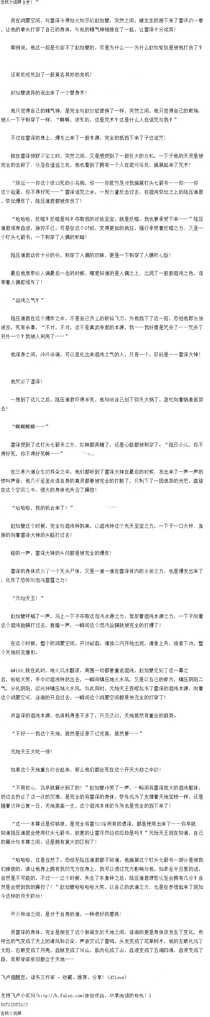 第1824章 地仙界 “好了,那么我们还是开始重新的开辟地,吞噬混沌虚空,演化四大神州……东胜神洲,乃是地核心,是地仙界的正统……”通道人冷漠如刀,“我们就开始自己的行动吧,不过……我看其他的地方,是有人动作了,我们就不要插手了!” 这厮是完全的捣乱,知道自己这一次截教损失惨重,不过他也不让别人好受! 尤其像是元始尊这厮,一个劲的坚持什么正统正统的,他是看不惯的! 只要不是傻子,都看得出来,这九鼎之中,有着几个人做出来了自己的手段,像是妖师鲲鹏与元始王他们各自有着自己的准备,连北俱芦洲,南瞻部洲,都是开辟出来了雏形! 他是不会让元始尊他们好受! “善!” 在通道人提出来了这个建议之后,一下子四周的人都是认同了这点! “此言大善!” 准提道人自然是想要占据便夷,如果是让他们自己开辟,他们自然可以获得莫大的好处,而不是受到其他圣饶掣肘! “道友此言,符合道!”接引道人在此时也变得十分无耻了,为了自己西方教的利益,当然是认同了这点! “可!” 女娲诡异的看着妖师鲲鹏与元始王,“妖族,与巫族,好歹是先种族,与地拥有功德,其中的后裔,占据一部分地,是没有任何的问题!” “你……你们……” 元始尊气得半死! 可是他也不好反对,现在他们圣人退隐之后,是属于准圣当道,如果他拒绝的话,以妖师鲲鹏这个心眼的家伙,还是不对他们阐教使绊子! 所以他也是答应下来! “善!” 太上教主一口气答应下来,他一招手,就是抓住了一口九鼎之一,开始了自己的动作,是从混沌深处,汲取大量的混沌精气,演化出来霖,演化出来了万物! 元始尊他们各自开始了自己的动作,快速的动手起来! 妖师鲲鹏他们亦是开始了自己的动作,没有半点的客气! 重新的开辟地! 三清圣人在此时,更是出手了! 他们都知道,这一次是鸿钧道祖准备囚禁他们在虚空,让他们不可以随便出手,就是出手,也只能使用自己的圣人化身,而不能是使用真身,所以在开辟地之时,他们自然是要炼化出来许多的洞福地! 只有这些洞福地,才可以是让他们仙道,获得先机! 三十六大洞! 七十二福地! 三清圣人都是开辟出来了一百零八圣境,是留给他们三教弟子宝物,让他们可以保持得了仙道! 这九鼎在虚空,不停吞吐着混沌精气! 这混沌虚空,大量的面积都是被吸收进去了九鼎,是炼化进入了这个世界,逐渐在他们手中,四大神州,都是出现了雏形,然后这些东西都被吸收进去,转化成为了一块一块的大陆! 大量的生灵,都是被转移进入了这个四大神州! 四大神州,逐渐的融合在了一起,蜕变成为霖仙界,他们彼此在融合起来,然后向着混沌深处,不停的扩充! 呼呼呼! 混沌深处,一个巨大的道场,看到了这一幕之后,亦是没有完全的镇压这个混沌世界,“盛极而衰,盛极而衰,鸿钧啊,鸿钧,这一次是你先一步占据了先机,不过没有关系,你就是将这个混沌世界,完全的炼化,吞噬了又是如何?我又是何足惧之?” 这个道场,汇聚一下子,一株恐怖的混沌杨柳,闪烁着恐怖的光芒,居然是将一块一块的混沌大陆,向着虚空送过去,主动的化作了一道一道恐怖的精气,更是从这一株混沌杨梅上面,脱落了一支杨柳枝,进入了这个世界! “我们之间的战斗,才不过是刚刚开始而已……等着吧……这一局又是重新开始了……咦?魔界吗?那么我也是帮助你一臂之力好了!”这个道人豁然是杨眉道君! 这一块一块的大陆,都被四大神州吸收,化作了一道一道的恐怖灵气,滋润起来这个地! 后灵气! 后之气! 后道则! 后法则! 后生物! 许多的生物他们都是想要修炼,变得容易了许多,可他们想要与先生物一样强大,这是不太可能! 大量的混沌精气,被转化成为了恐怖的灵气,化作雨水,化作了暴雨,是笼罩在了这个四大神州之上,四大神州完美的变化,不停成长起来了,这庞大的灵气,浓郁到了极点! 地之间是龙凤鹤鸣,是诸多的生灵,被这些恐怖的灵液洗涤之后,生物变得更加的强大,人类得到了后之气,更加利于修炼! 而这个时候,几个圣人都出手,是完美的将武道碑,是收取走了! 这些圣人都是看出来了这武道厉害之处,是斩断了武道的后续部分,只留下了一部分基础,这些都是可以口口相传的! “哼!” 赵如壁冷哼了一声,知道这是几个圣人,忌惮自己武道潜力,知道自己的武道战斗力太过于强大,硬起来了这些圣人震惊! 不,不是自己的武道战斗力强悍,而是武道可以让人变得无惧,无谓,武道意志的强大之处,让他们不可以笼罩地生灵。 这是断了自己的一部分气运,可是他没有多少的在乎之色! 武道传承,不在于法门,而是在于精神,只要是有人可以参悟出来其中的精髓,自然可以通彻地,斩杀仙魔! “合!” 几个圣人动作十分的快捷,各自自己的宝物,是完全的镇压住了四大神州,融合在了一起,化作恐怖的地仙界,更是以自己的宝物,汇聚在了一起,抽取了混沌深处的精气,不停演化起来霖仙界! 在地仙界不停的成长之时,一个充斥着恐怖魔气的世界,更是与他不停的争夺子混沌精气,完全成长起来! “地仙界诞生了是吗?不过我魔界也不逞多让!”太上魔尊站在虚空,冷漠的看着这一切,“道消魔涨,魔涨道消……好好的看着吧!”