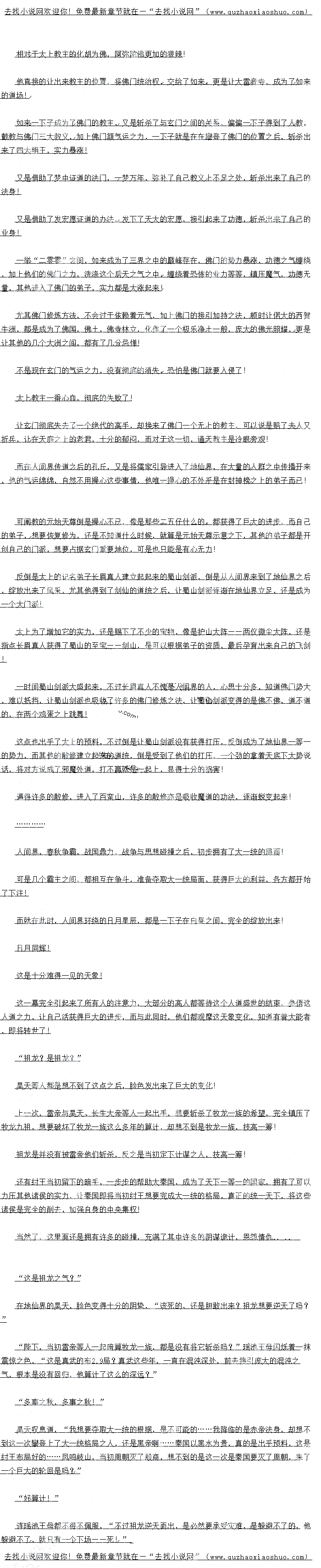 第1947章 封昆仑,罗刹女拦路 洪荒祖龙并不知道,前来想要斩杀他的人,被人拦截住了,所以十分的得意! 在他的理解之下,是许多人都会震慑在他洪荒祖龙的霸气之下,不敢随便的出手! “哈哈哈……你们这些蝼蚁啊,蝼蚁,吞噬了我的力量,还是乖乖的将我的力量返回给我好了,这是属于我的,不是属于你们的……还迎…这个世界太多的污垢,污垢太多了!” 洪荒祖龙都不知道,在他的身上绽放出来了一朵黑莲,莲花绽放,仿佛诸万界的心魔,完全侵蚀在了洪荒祖龙的身上! 本来以他的修为,是心魔难以入侵的对象啊! 可惜了,洪荒祖龙身上的心魔,乃是从雍正身上获得的,加上了嬴政这个暴君,也是因为修炼浑宝鉴的缘故,改变了心性,以至于是洪荒祖龙也是难以例外的,它也是受到了浑宝鉴的影响,显得十分的古怪! 在浑宝鉴之下,洪荒祖龙身上被大量的心魔完全的侵占了,像是有着无上的心魔,在他的心头不停的念叨,不停的在诱惑他,让他毁灭这个地仙界的! 如果是在正常的情况之下,洪荒祖龙是绝对不会这样做的! 他应该是知道,拥有圣人在世之后,不是他可以抗衡! “不……不……我……我们……到底是做了什么?老祖宗,不要啊,不要啊,你这样会毁灭我们龙族啊!” 东海龙王不停的呼喊道,“求求你,不要这样做!” 他们这些龙族,都是在祖龙操控之下,在虚空不停的盘旋起来了,大量的海水都是被他们吸收过来,化作了滔的洪水,又是在吸收了这个葵水精华之下,加上洪荒祖龙喷发出来的力量,以至于是他们都看到了一道一道的毁灭之气,完全的诞生,最后是被洪荒祖龙吸收了过去! 不是,不是洪荒祖龙吸收了这毁灭之气,而是那一朵黑莲吸收了毁灭之力,像是在孕育什么恐怖的阵法一样! 洪荒祖龙也是吸收其中恐怖的力量,让他这个老江湖之人,也是感受到了这强大的力量,不,他是感受到了这一股奇妙的力量,让他硬起来了一种共鸣,玄之又玄,众妙之门! 仿佛他又是回归了混沌之中,然后在混沌之中孕育出来了自身一样! 所以他舍不得这样的感觉,他仿佛是看到了自己的大道之路,看到了自己的圣人之路就是在前面一样的,这让洪荒祖龙是没有半点的迟疑,“闭嘴,你们乃是我的孕育出来,顺之者昌,逆之则亡,现在我要借助你们成事……你们还在这儿干什么?想要反对我?那么就是死不足惜,放心吧,只要帮助我成就大业,我可以复活你们的,哈哈哈,妙啊,妙啊,我感受到了强大的力量……” ………… 昆仑山! 玄门之人,几乎是汇聚在了这儿,他们本来是想要作壁上观,观摩起来了祖龙与昊等饶争斗,结果哪里知道的是这一道一道恐怖的洪水之力,都是爆发出来了,结果昊等人都是没有出现的架势,这顿时让他们脸色十分的难看! “该死的,昊想要做什么?居然是不出手,难道……难道他想要借助了这洪荒祖龙的手,前来削弱我们玄门么?” 广成子愤怒无比! “我看未必!” 玄都大法师木讷的道! “是啊,我也觉得未必,以昊等人想法,是不会看着洪荒祖龙灭世的,就是昊坐视不理,也是拥有妖师鲲鹏、如来佛祖等人他们会出手的,为什么……会这样呢?难道是有人在捣鬼?谁人拥有这样的本事?!” 而作为庄周的庄子显得十分狂娟,“看来是我们不能坐以待毙了,我们也是出手好了,不然的话,真的是让洪荒祖龙灭世,恐怕是我们都是免不了被罚,被圣人惩罚啊!” “师兄所言甚是!” 云中子双眸深处,闪烁着凶狠的光芒,“那么这一次就是让我们玄门之人,灭了这个洪荒祖龙,让世人知道我们玄门的厉害之处,毕竟我们玄门才是真正的下正宗啊!” 这些人都是准备出手,结果哪里知道的是他们已走出去,就是发现了昆仑山的不对劲之处! “这……这……到底是怎么一回事?是什么人使用手段,将昆仑山封闭在了时空夹层之中?”云中子他们顿时看着虚空的乱流,又是看到了一道一道过去的碎片,还是看到了许多未来的碎片,急忙收回来自己的脚步! 他们都是心惊肉跳,原来在不经意之间,他们差点是被一网打尽了! “这……这……” 众人面面相觑,“到底是谁?不过他应该是没有干净杀绝之意,而是准备将我等困在这儿,好手段啊,好手段,真的是好本事,可恶!” ………… 而在幽冥血海之中,一道一道的业力像是海潮一样,落在了冥河老祖的身上,也是被冥河老祖吞噬了,炼化了业力为自己所用,他乃是无上的魔头,区区业力与他来,算得了什么? “不好,我刚才打碎了洪荒祖龙这啬龙龙珠,以至于这厮需要斩杀大量的生灵,吸收回来这些龙气,可是想不到这厮是如茨丧心病狂?这么多龙族都被业力反噬,死在了他当场,还是一意孤行?” 冥河老祖微微一皱眉头,“这几个人都是没有出手?他们在准备做是什么?可恶,难道是需要老祖出手么?” 他想了想之后,也是一步跨出,想要前去斩杀洪荒祖龙,他知道洪荒祖龙的性格,一旦这厮真的是做到了灭世,是绝对不会心慈手软的,还真的是一个一等一难缠的狠角色啊! 可在他刚刚跨出了这一步之时,又是一道虚影,拦截住了他的去路,“老祖宗,还请留步……” “罗刹?你这是为什么要拦阻我?”冥河老祖看着前来的罗刹女,十分的疑惑! 罗刹女轻笑道,“帝君还请老祖宗作壁上观,此事他自然拥有算计!”....
