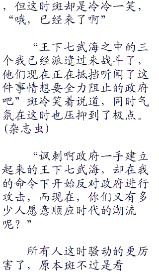斑冷然的话语在每个人的耳边响起,让所有人不禁心头一颤,那霸王色中又带着冰冷的杀气让他们无从反驳。