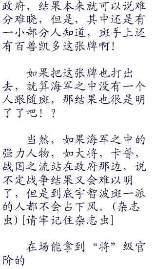 “世界政府这次,我是一定要灭了他们的,现在你们都给我做出选择,凡是想要听从我的命令,一起杀光政府的人的,现在就站在这里不要动,要想政府那边的,现在就给我滚出大门爬到玛丽乔亚去!”