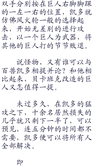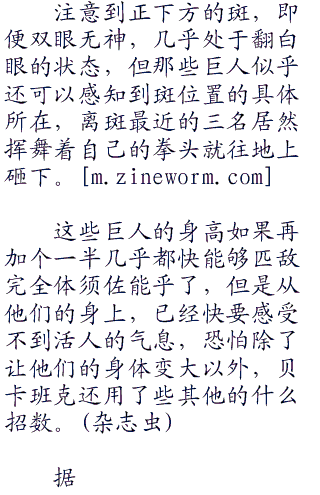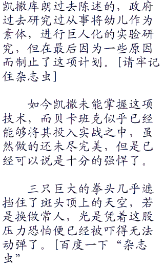 “丧心病狂啊贝卡班克”斑转身看着不断向自己逼近的巨大人影,冷然说道。