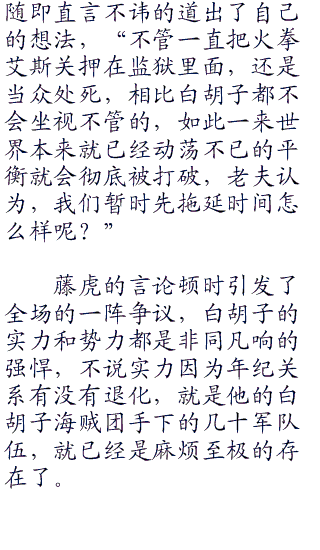 波特卡斯·D·艾斯,白胡子海贼团的第二队队长,悬赏超过五亿的大海贼,曾经也是被邀请成为王下七武海的海贼,但是他在那个时候却是没有一丝回旋余地的拒绝了七武海的位置,如今他被一名叫做马歇尔·D·蒂奇的海贼抓捕过来,正便足以证