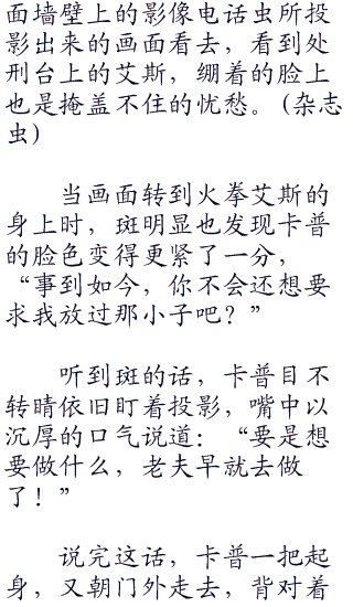 来者除了卡普以外也不可能有其他人了,同时坐在斑办公桌对面沙发上的卡普,眼睛也往侧