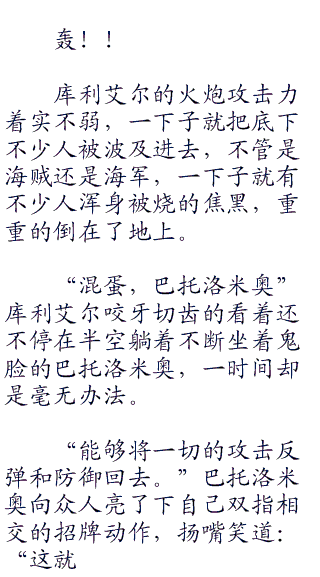 在白胡子运用能力强为自己的儿子们打开一条道路之后,白胡子海贼团的全军士气再次得到提升,一鼓作气往港口右侧方向墙壁上的凿洞冲入广场内部。