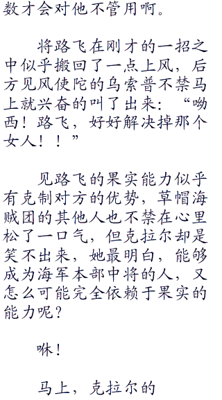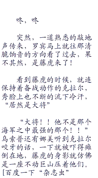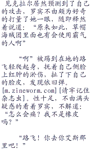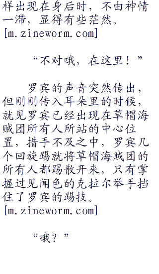 “啪!”的一下,路飞的脚踢到了罗宾身后的冰面处,传来一道脆响,随即伸长的橡皮脚重新收了回来,恢复了正常状态,罗宾也将刚才为躲避攻击而歪着的头部重新放正回来。