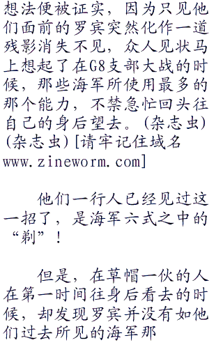 草帽海贼团几人看见身上生长出来的手臂,一时间全部吓得动弹不得,一时间忘记了反抗,而就在这一刻,罗宾微微一笑,“勾爪!”