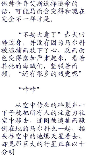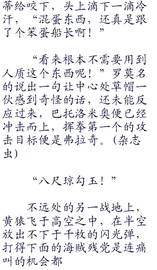 突然,萨博将身旁的路飞扑倒在地,在路飞还困惑之际,只见冷然刹那,一道白色的闪光利风从后方划来,一把刮裂了萨博黑色风衣的一角。