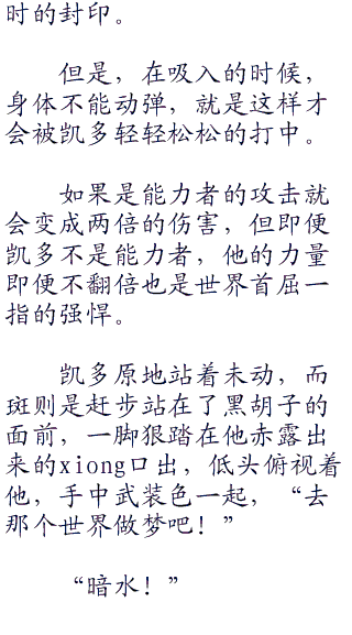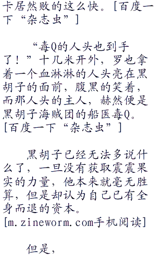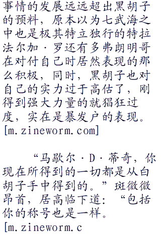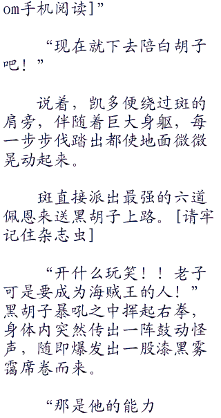 斑不轻不快的走到黑胡子的面前,这样一来,黑胡子在因佩尔顿召集的新同伴们就全部玩完了。