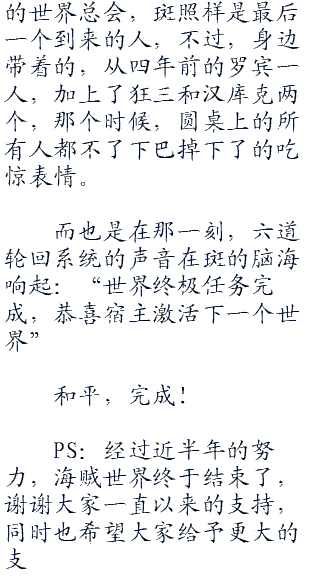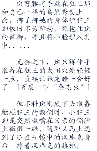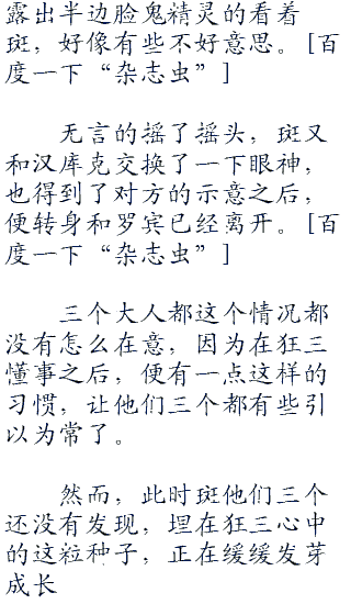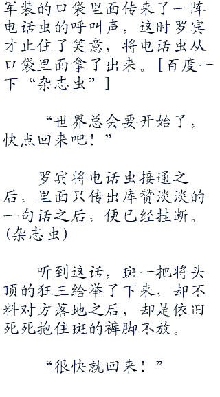 “嘻嘻!爸爸,我也可以丢到对面去了!”小狂三骑在斑的脖子上面,放在斑肩头下的两只小脚一晃一晃的,即便坐在那种地方无法看清父亲的脸,但她还是可以想象的到斑此时的表情是多么的精彩。