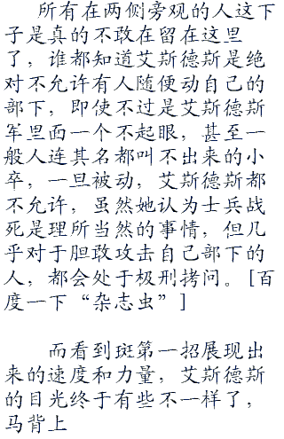 不仅仅是那些穿戴一样的银白服侍士兵,连同艾斯德斯旗下的三兽士此时亦是脸色不善,一把从战马上下来,一样瞪着斑,艾斯德斯虽然性格抖s,但是对于部下却是极为亲切,自身散发出难以言喻的领袖魅力,让她十分受得部下的敬重,尤其是其麾下