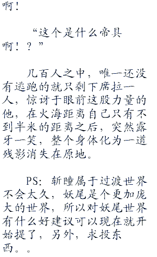 斑已经慢慢从地上站起,将目光集中在了席拉手上一甩一甩的那个仪器上面,即便是在科技十分先进的海贼世界里面,也没有见过,让斑不禁稍稍升起了一点兴致。