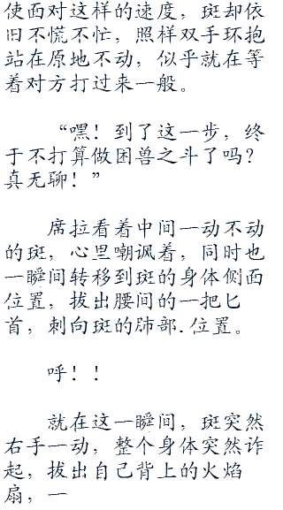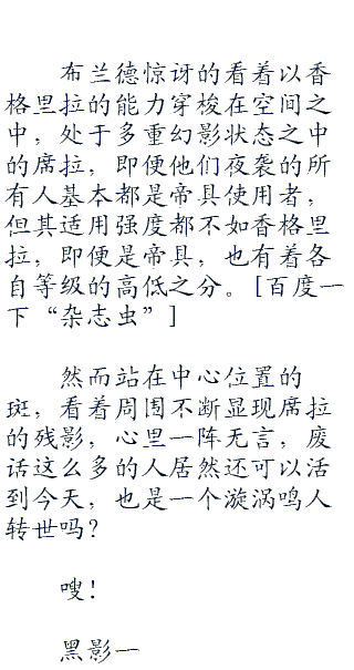 语毕,席拉再次消失在原地,身影在斑的周围不断闪现残影,就像分身术一样出现了几十个席拉一般。