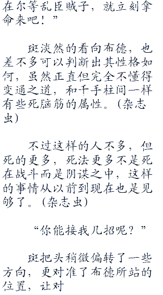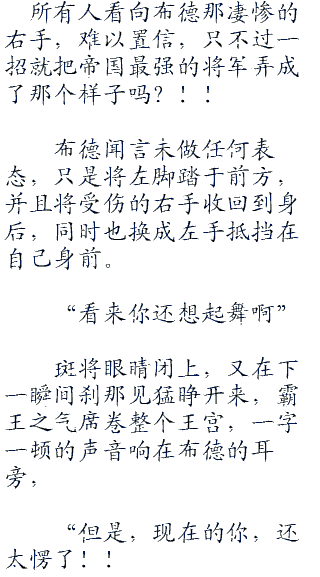 斑坐在王座之上依旧没有动一分,只是双手放在扶椅处,俯视着前下方的布德将军,尤其往他身上爆发出来的电光看去,突然道:“好像不是一般的蝼蚁之辈”