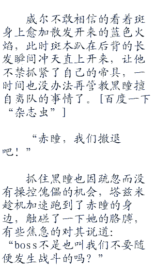 发出呼喊的,正是跑在最前面的那名蓝发男子,一边呼唤着黑瞳的名字,一边极速跑到了她的身边,有些责怪的对其说道:“队长不是发来旬报说不要擅自行动的吗?为什么要!”