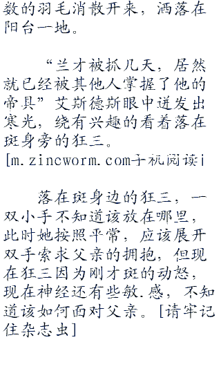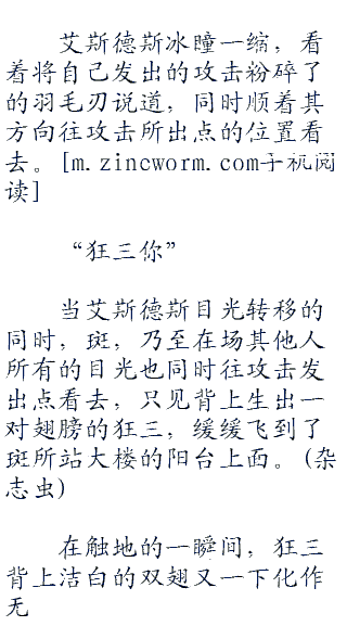 斑轻眼往身后一瞥,眼中透露出极其的不屑,正准备回手进行反击,但突然几道羽毛闪现而过,好似忍者射击而出的苦无一般,将艾斯德斯发出的冰刺,一瞬间全部戳成了碎屑。