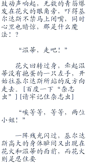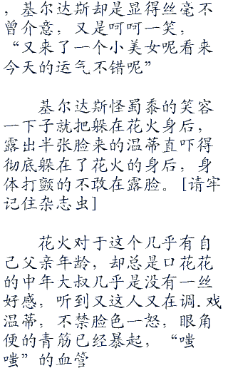 花火反复咀嚼了几遍基尔达斯口中所说的什么名字,在对方满怀期待的视线中,将头轻撇到另一边,说道:“没听说过!”