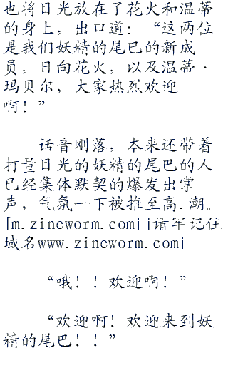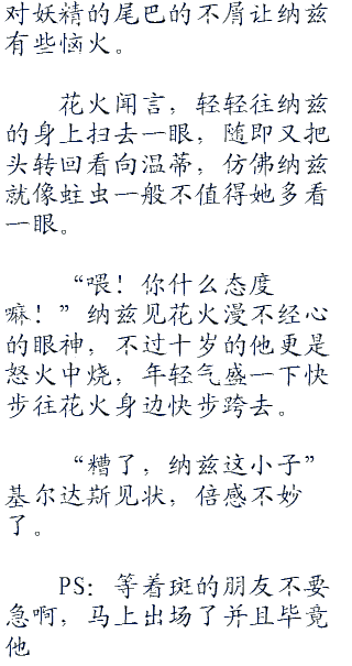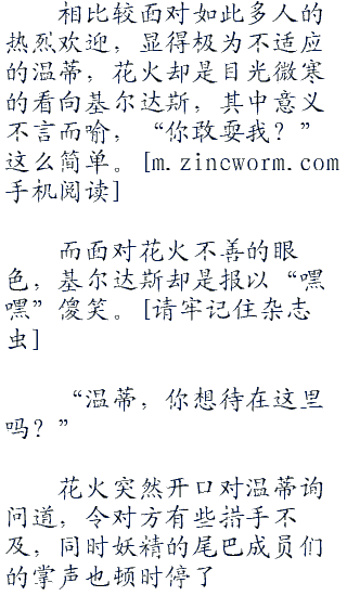 数不清的视线照射到花火和温蒂的身上来,突然就有着一种小孩在动物园观赏猴子的既视感,温蒂抱着蛋一下在花火的身后躲躲藏藏,而花火对于妖精的尾巴人传来的视线也是微感一阵不快。