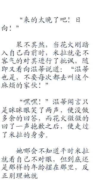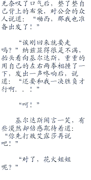围在一团看着花火所画的素描,不知道什么时候,连基尔达斯都出现在这里,仗着身高的优势,看着纳兹手上斑的素描,摸着自己的胡渣下巴,脸色有些不好看。