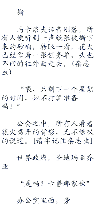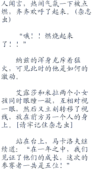 纳兹这时却是不像过去找格雷挑事,而是也抱着自己捡来的一颗蛋里孵出来的猫,哈比,一起焦急看着马卡洛夫,等着他嘴里即将说出的事情。