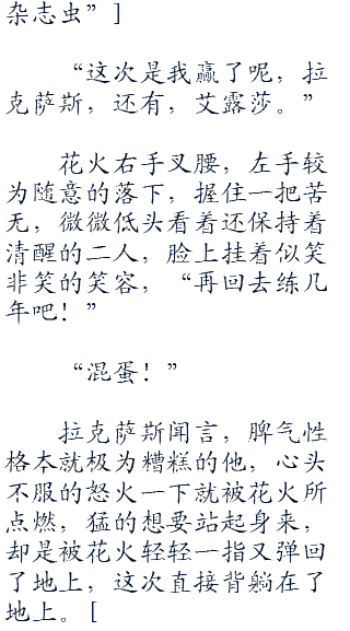 造成这阵雷鸣的,便是妖精的尾巴会长马卡洛夫的孙子,拉克萨斯,但此时,他已经精疲力尽的跪在了地上,气喘吁吁的喘着粗气。
