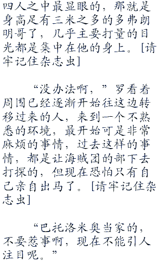 巴托洛米奥,罗,以及多弗朗明哥三人,斑挑选出来的便是这三个人作为自己前往新的世界的臂膀,海贼世界之所以能够维持着和平,就是因为有全世界数不清白绝分身无时无刻的进行的各种监视,将所有又能破坏和平的存在都尽可能抹杀于摇篮之中。