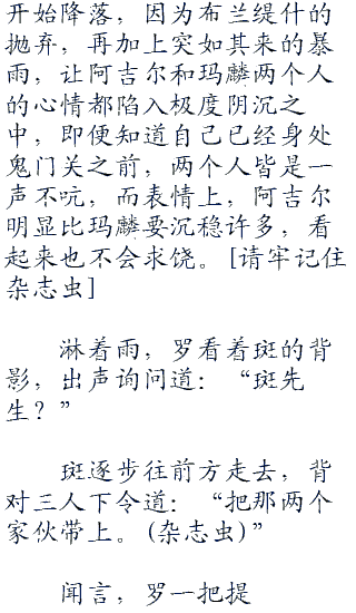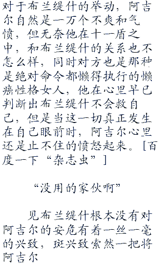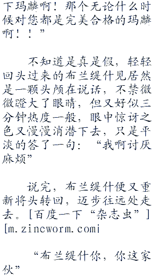 说着,布兰缇什露出极度失望的表情,垂着肩膀转身往原来的那只路原路返回,竟是再也没有多看安吉尔和玛麟一眼。