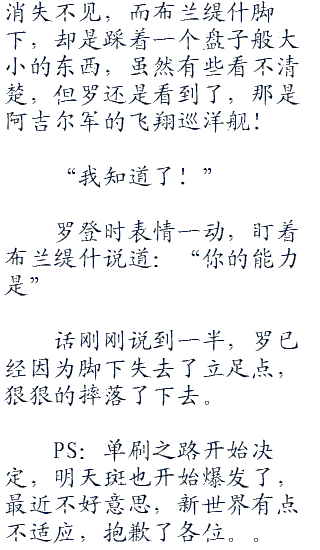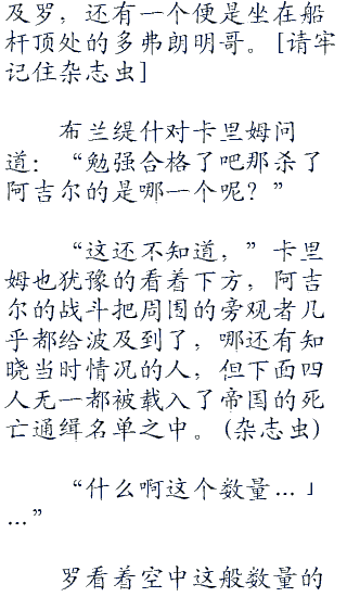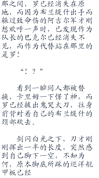 做过卡里姆和巴克尔的身旁,到达船头处,一手插在腰间,另一只手随意的垂下,布兰缇什看着下方的小船,可以说是和斑对视了起来,突然又自埋自怨的说道:“为什么我要做什这么麻烦的事情呢?”
