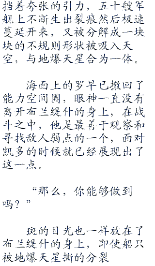 背朝着下方的大海摔落了下去,罗目光依旧放在天空上踩着上面东西的布兰缇什身上,在跌至一半距离时,空中布兰缇什所踩的东西又在刹那瞬间无限的放大,最终重新变成了一艘飞天巡洋舰。