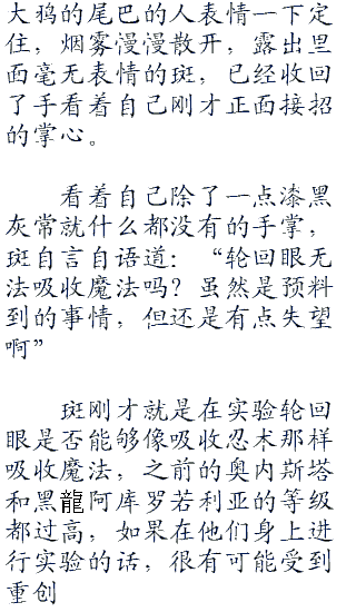 “别让我说同样的话,”斑稍微将头偏转过来了一点,但在刘海的遮挡下也只能略许看到一点下巴位置,整个面颊压根就看不清楚。