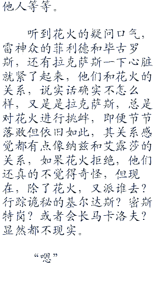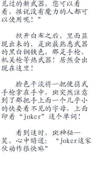 当斑走进暂时属于他自己的独立房间后,直到门发出“砰!”的一下关门声之后,鲁西罗斯才一抹自己脖子上的伤口,再看向掌心的时候,发现已经被鲜血染红了大片,在其他七眷属面前丢脸,让一向好面子的鲁西罗斯一时有些气不过来,狠狠的一甩手之后,便离开了大厅,留下剩余的五位七眷属在原地静静思索着。