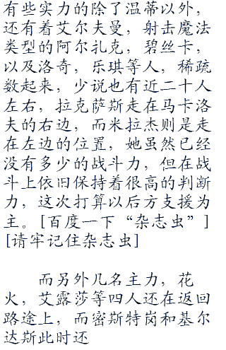 在马卡洛夫之后,妖精的尾巴之中几乎比较有实力的都皆数在此,拉克萨斯和雷神众之一的菲利德皆在其中,而毕古罗斯作为公会里和艾芭葛琳唯一几个说得上话的人,留在公会之中对她进行照看。