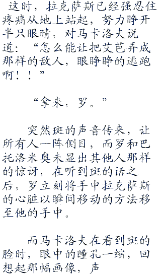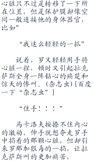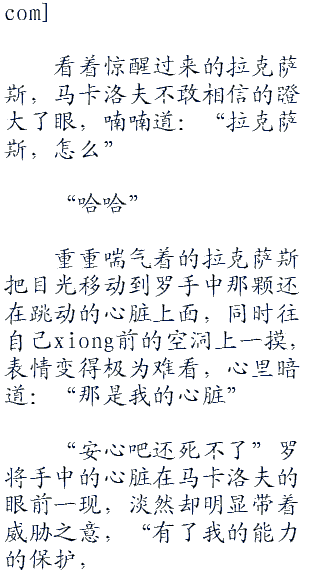 这时,拉克萨斯的呼吸才开始急..促起来,慢慢的跪在了地上,不断大口大口的喘息着,艰难的往发出咚咚响动的后方看去,当看到那颗心脏时,他也露出了和米拉杰一样的表情,但不同的是,因为人体最重要的器官离开了身体,导致他身体一时间供氧不足,大脑一时急剧缺氧,昏厥倒地。