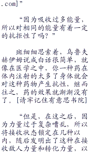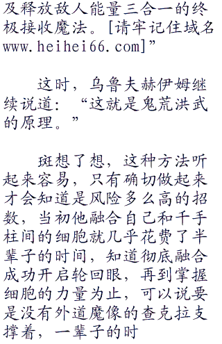 斑没有问完这么一点就算了,对于乌鲁夫赫伊姆最后使出的那记杀招,将敌人的能量吸收转化为自己力量的这件事情,把斑