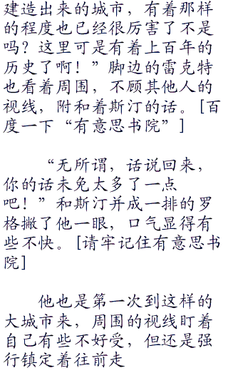 走在第二排的斯汀环视着周围的城市景象,哈哈大笑道:“第一次见到这么大的城市呢!不说沃库镇,就连堂吉诃德城也无法与这里相提并论呢!”