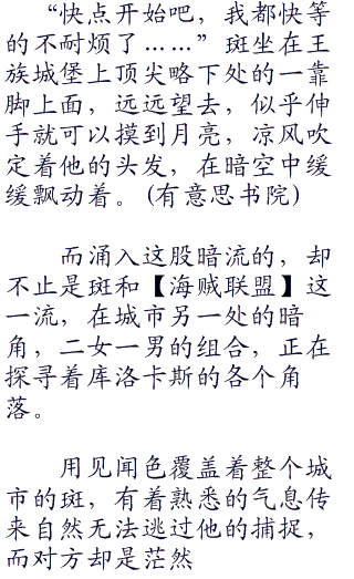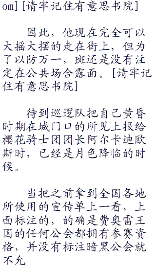 黄昏之下,一众人身体各部印刻着那颜色各异的纹扇标志的人从城门走进库洛卡斯王城,而他们的到来,也的确一下把整条街的眼球吸引了个遍。