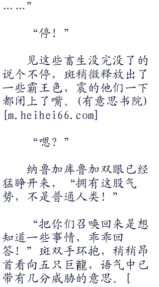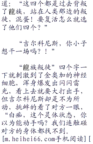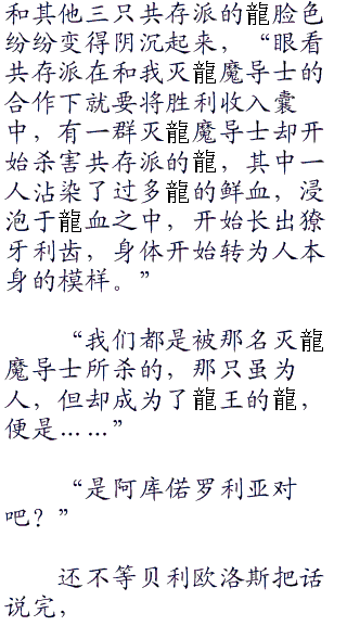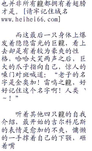 吉尔科尼斯显得十分不爽,这时其他四只龍也纷纷从震惊中回过神来,看看向吉尔科尼斯的脸色,也微露不善,最后将主要集中力放在了面前最为人类的斑身上。