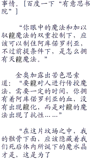 “也不能这么说,只不过要学会驭龍魔法,前提条件就是必须的事得失灭龍魔导士,因为要使用灭龍魔法和龍产生共鸣对龍进行驱使,”