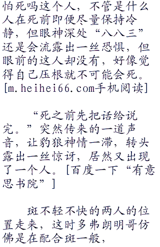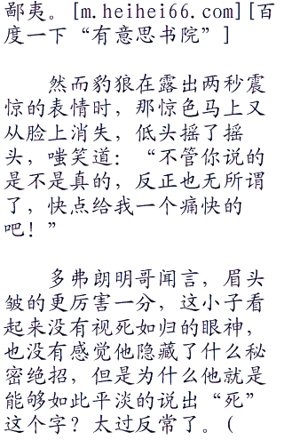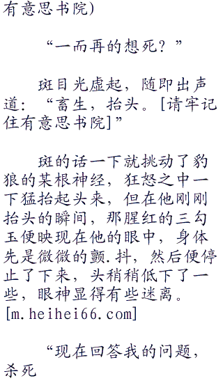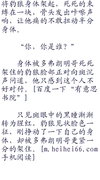 勉强睁开已经是血痕遍布的脸来,因为脸上的伤口,豹狼笑得十分牵强,但就是没有一丝的畏惧之意。