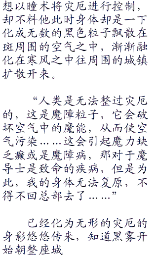 剧痛退后的过程中,灾厄身上的连帽长袍被一下自己扯下,露出了里面的面孔,暗棕色的头发和浓密的胡须,黝黑的皮肤在琵琶骨两边有着黑色的纹身,一张脸让人想起一种动物,山羊。