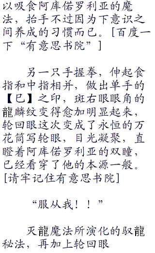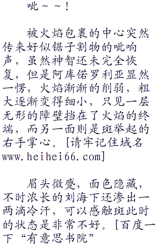 仿佛是蓝色与黑色混合而成的乌黑蓝色火焰从阿库偌罗利亚的血盆大口中喷射而出,直取下方的斑,巨大的火柱撞击在四周的瞬间并不是像普通的火焰那样将周围空气的温度升高,把地面的岩石融化,然而是散发着无尽的阴冷感觉,说那是火,到不如认为那是披着火外皮的冰。