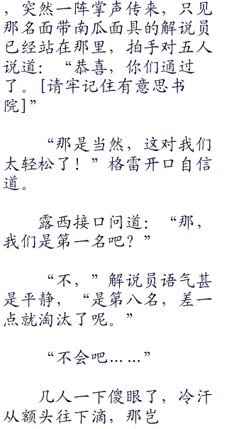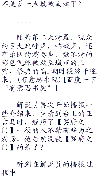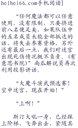 “前来参加队伍的数量每年都在增加,意味着这个大会开始被人小看了,因此今年,我们将预选赛一口气缩减为八支,规则很简单,从现在开始互相竞争,终点便