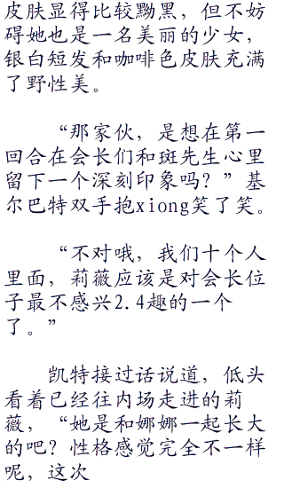 斑的目光已经不在注意下去了的梅比斯,入场的八支队伍全部到齐,第一轮不需要一支队伍的全部五人,所以会场中也有不少人已经上普通观众席下一层的特殊观众席。