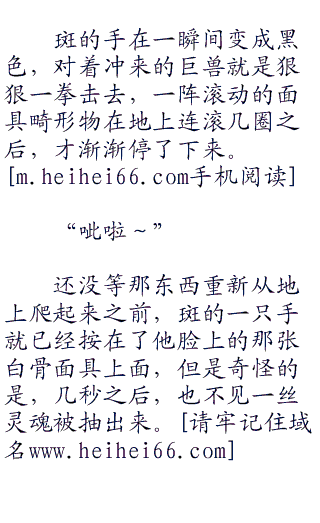 斑喃喃念出这三个字,这时那怪物已经挥着那唯一一只仅剩的手臂冲了过来。