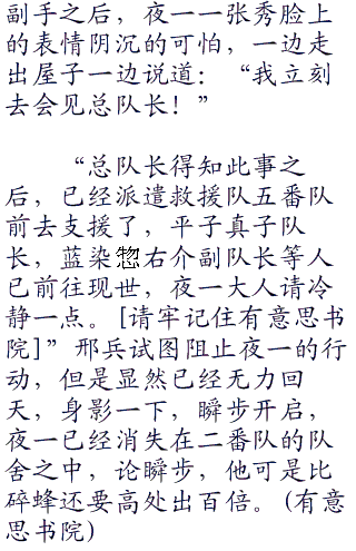 “把碎蜂一个人叫去会不会有些勉强?”静灵庭的二番队总队室里面,夜一一手撑着自己的侧脸思考着,一开始她觉得以碎蜂的实力,就算一个人去,即便不敌,以那就出类拔萃的瞬步,还是应该可以全身而退才是。