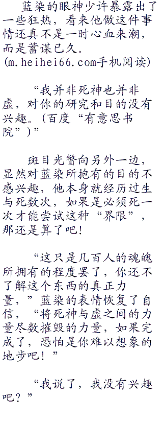 他和蓝染分别以极快的速度穿过静灵庭的大范围面积,一路上斑也见到了不少普通的死神,但那些人,似乎都为看到自己,想必不是因为他们反应迟钝,而是蓝染动了什么手脚。